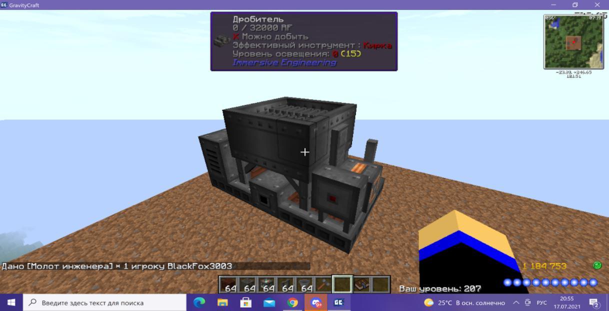 Выставляем блоки в структуру 3x3x3 и тыкаем молотом инженера ПКМ по центру. Получается такая вот конструкция…