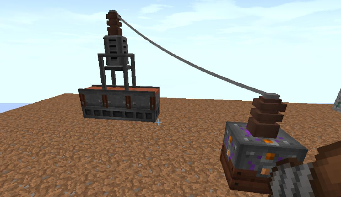 Тыкаем ПКМ формой пресса в верхнюю часть пресса(я выбрал шестерню) и подключаем сундуки с 2х сторон (1 подает ресурсы, 2й получает готовую вещь). PS. ставить на уровне конвейерной ленты.